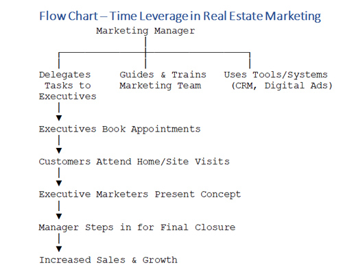Time leverage is the process of maximizing output by using other people’s time, systems, and tools effectively instead of doing everything yourself. In real estate marketing, it means a manager achieves more results not by working harder alone, but by leading, delegating, and empowering the team.